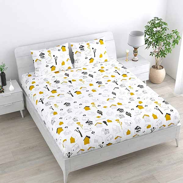 Dress your bed lavishly with this beautiful bed sheet set. Each set contains one double bed sheet and two pillowcases