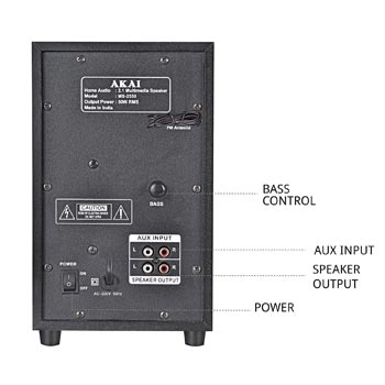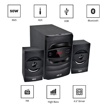 AKAI 2.1 Channel Multimedia Speaker System LED Display, Subwoofer driver size 4.5", Satellite driver size 3"