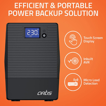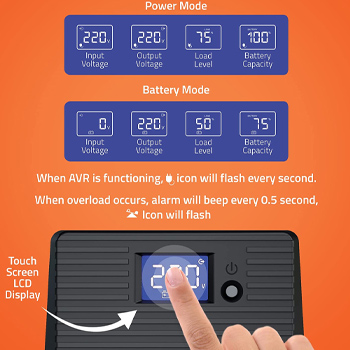 600VA LCD Desktop PC UPS. Generator Compatible. Wide input Range: 140-300V. With Cold Start Function & AVR which regulates voltage automatically.