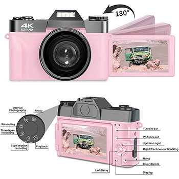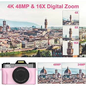 【Camera for Photoggraphy and Video】The digital camera featuring 4K video and 48MP photo resolution, the vlogging camera supports 16X Digital Zoom, Video Pause, Recording while Charging, Loop Recording, Continuous Shooting, Silent Recording, Self-Timer. with the latest upgraded chip to ensure the camcorder images more high-definition, more realistic. It’s the best gift for friends and family.