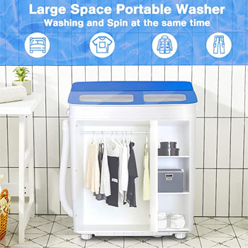 【Large Capacity and Powerful】: Mini lavadora, but large capacity. 8 lbs for washer and 7 lbs for spin tub, what’s more, the spin tub is made of stainless steel, for long term use. Also, our apartment washer with powerful motor, 280 W washing power and 160 spin power, built-in gravity drain, full free your hands