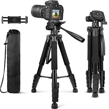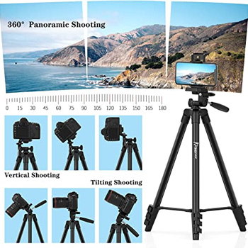 3-Way Pan Head - Kingjue tripod features an ergonomic head equips with three separate knobs of the headlock, pan lock, and tilt lock, with a universal ¼ screw