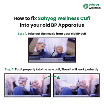 This Cuff is compatible with all Major Blood Pressure Monitors (like Omron & Sahyog Wellness brand). This is just a one minute job and this way you can use this cuff easily without any issue.