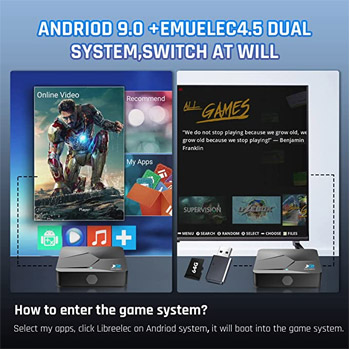 Kinhank Super Console X2 Built-in 82,000+ Classic Games,64G Retro Gaming Consoles Compatible with 60+ emulators, S902X2 Chip, Android TV 9.0&Emuelec 4.5 Systems in One, 2 Controllers