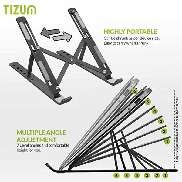 Tizum laptop stand is made of Anodised Aluminium Metal which is 3-Times sturdy that may be the most solid desk stand you had ever.