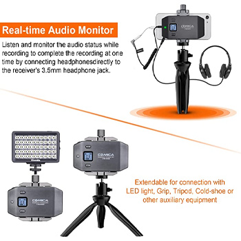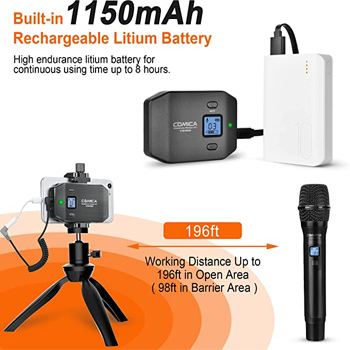 CVM-WS50 H Wireless SmartPhone Handheld Microphone features 6 channels to choose from, flexible channel matching. When other channels are disturbed in the same space or near distance, you can quickly switch the channel to prevent interference.